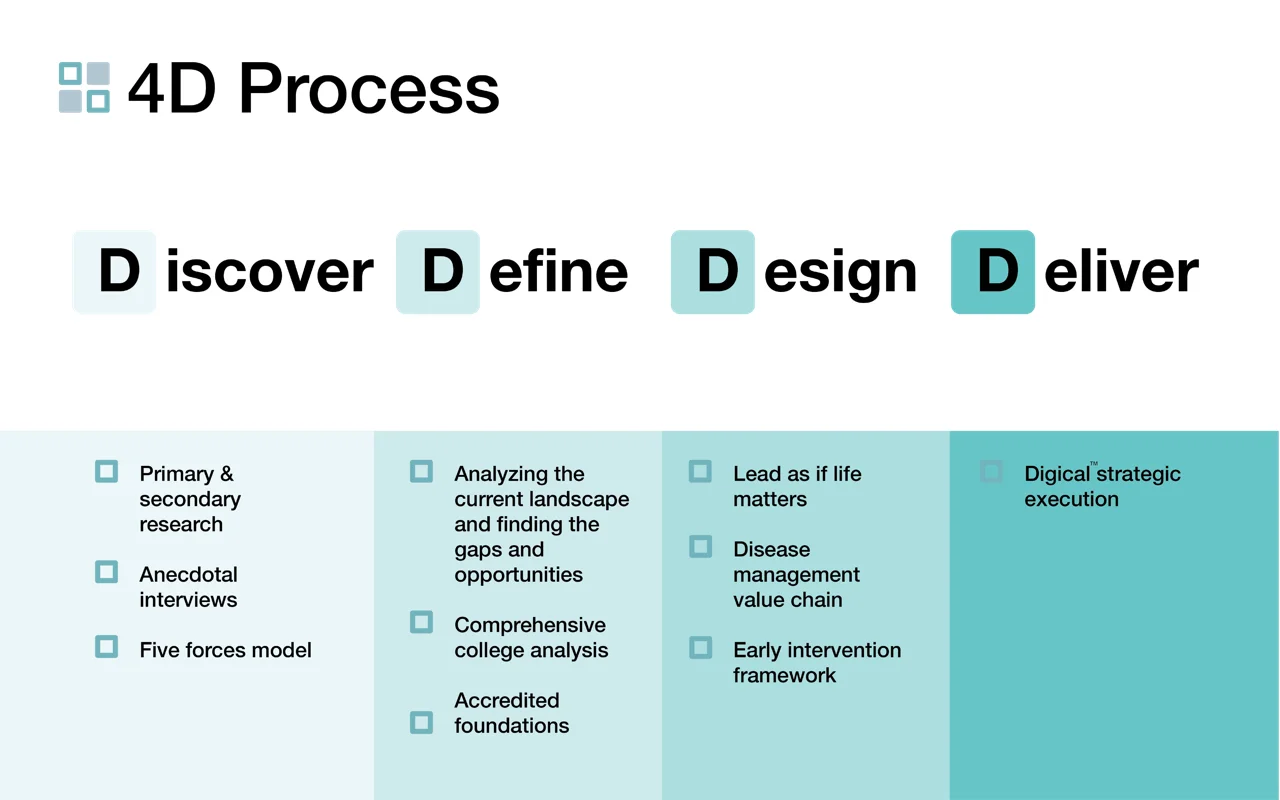 - Using the 4D method – discover, define, design, deliver – we carefully studied the landscape of services on college campuses and through empathic modeling, studied the student with bipolar disorder.